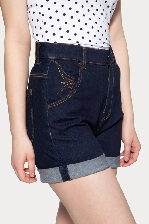 Transporta tu estilo a la época dorada con estos impresionantes shorts vaqueros. Este diseño de Queen Kerosin captura la esencia femenina de los años 50 gracias a su ajuste de cintura alta y pierna ancha que realza las curvas de forma espectacular.